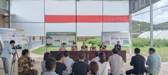 8月6日,大姚县在龙街蓝莓产业基地举行“龙街镇2022年沪滇协作项目效益分配仪式”,县委常委、县人民政府副县长宋爱生组织县农业农村局,县乡村振兴局,县委组织部、龙街镇及项目承租方企业负责人等共同为新成立的大姚新迦百农农业科技有限公司党支部揭牌,并向龙街镇8个村发放项目租赁收益分配资金42万元。