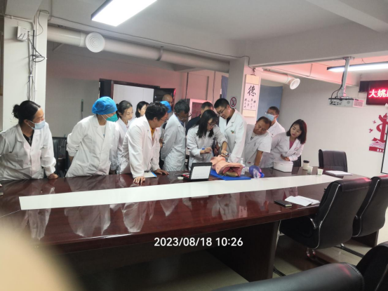 为更好地为广大人民群众提供合适的、有效的急救护理措施,保障病人生命安全,提升医务人员急救处置能力,2023年8月18日上午,在大姚县紧密型医共体总医院的统筹下,县人民医院重症医学科杨红成主任、主治医师金晓祥、李淑梅护士长到大姚县紧密型医共体龙街镇分院开展业务指导帮扶。