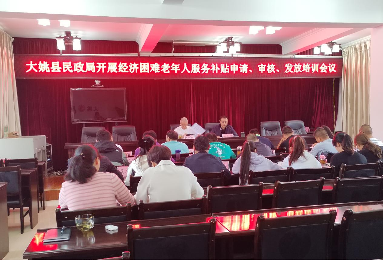 2023年8月28日,大姚县民政局召开县乡两级经济困难老年人服务补贴申请、审核、发放培训会议。