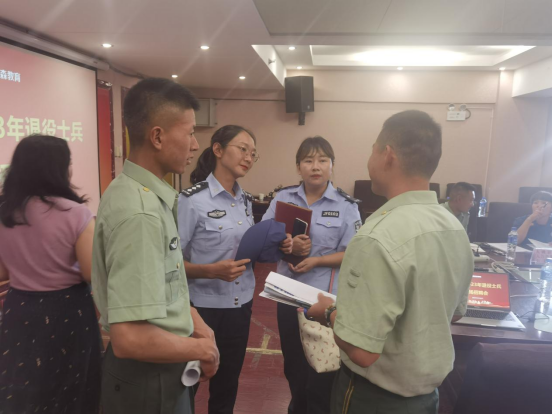 招聘会现场气氛热烈,招聘单位通过招聘单页,宣传海报展示等方式,向求职者介绍工作环境、薪资待遇。求职者通过面对面沟通交流,了解企业用工条件,填写求职信息,17名退役士兵找到了自己满意的岗位。