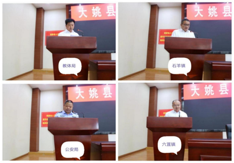 石羊镇、公安局、六苴镇、教体局在推进会上作了交流发言。