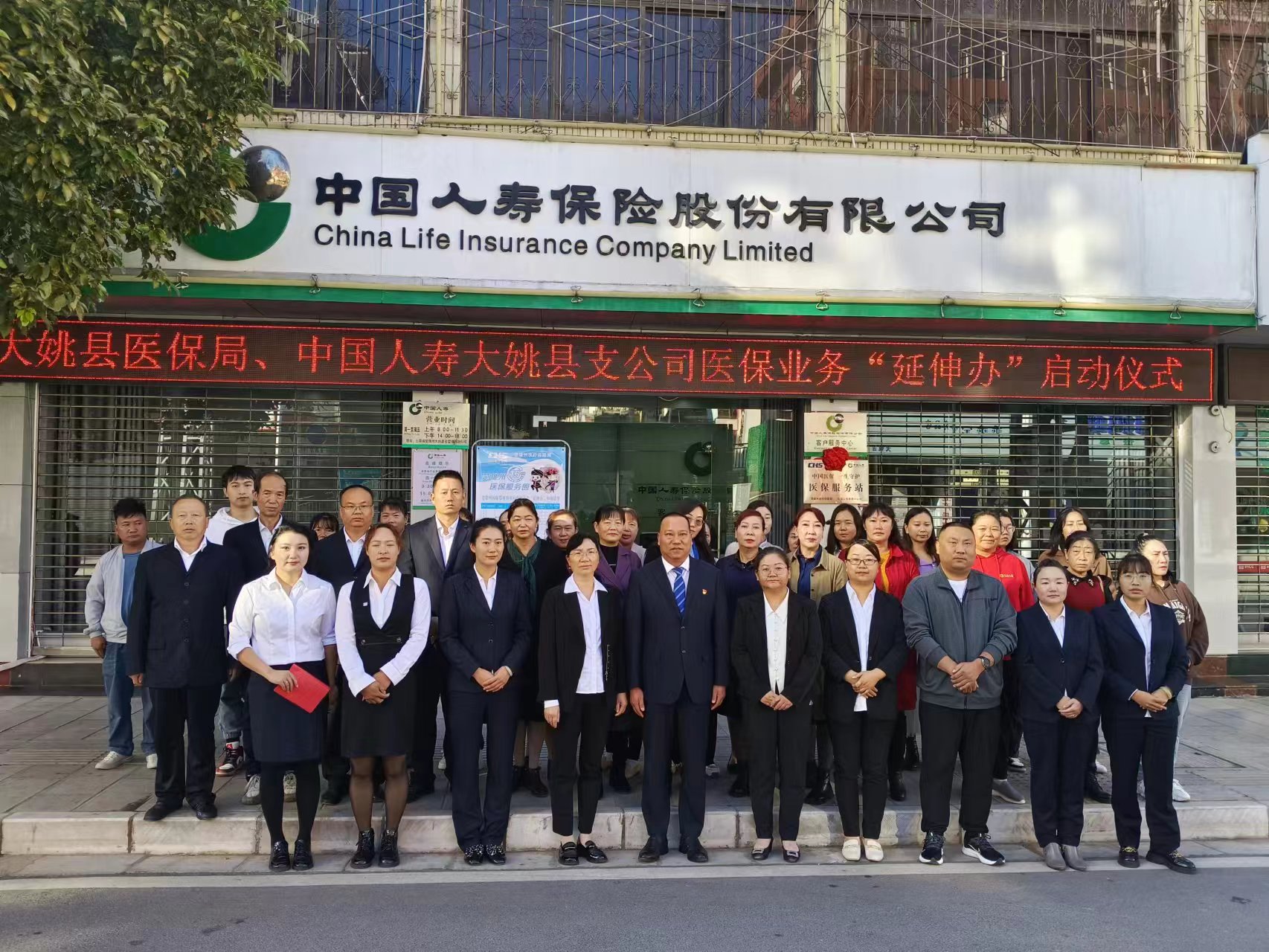 10月19日上午中国人寿大姚县支公司医保服务“延伸办”医保服务站与全州其余九县市同步揭牌,将医保参保管理、待遇管理、信息查询、信息管理4大类41个服务事项延伸至中国人寿大姚县支公司柜面服务窗口办理,为参保群众提供医保服务事项的直接办理或帮办引办服务,标志着我县医保经办服务又迈出了新的一步。