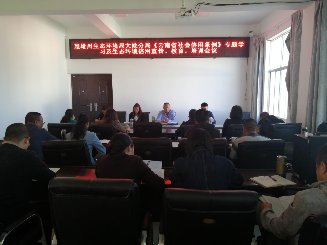 为深入学习贯彻《云南省社会信用条例》,全面推进机关社会信用体系建设,营造良好社会氛围,10月20日,楚雄州生态环境局大姚分局组织《云南省社会信用条例》专题学习,分局党组书记、局长钟学能主持本次学习,全体干部职工参加。