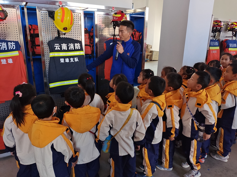 11月1日,大姚县东城幼儿园150余名萌娃在老师及家长的带领下,走进大姚县消防救援大队参观体验,预热“119”消防宣传月。