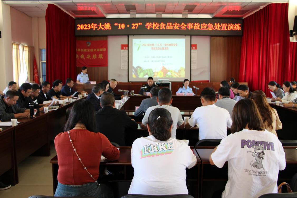 为有效防范和应对学校食品安全突发事件,提高应急处置工作能力,最大限度地降低突发事件带来的危害。10月27日,大姚县“桌面+实战”开展学校食品安全事故应急演练,县委宣传部、县市场监管局、县卫生健康局等10家单位参加演练,县食安委成员单位分管领导、12个乡镇人民政府食品安全分管领导和县食安办工作人员、12个市场监管所的所长、16家县城区学校负责人共65人参加观摩。