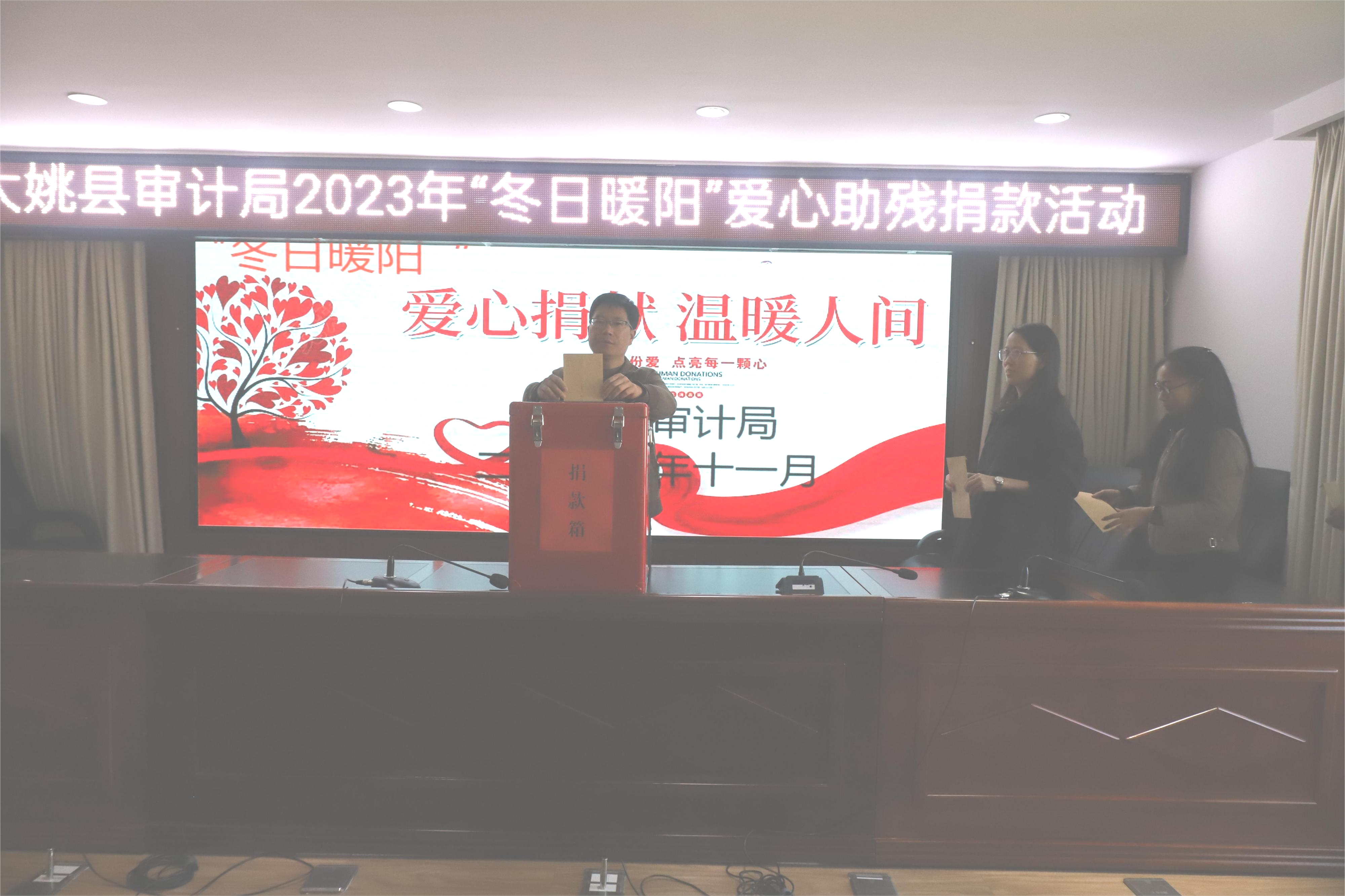 为认真贯彻落实党的二十大精神,坚持为民办实事,着力解决人民群众急难愁盼问题,充分发挥基层党组织的战斗堡垒作用,党员带头发挥先锋模范作用。11月13日上午,大姚县审计局开展“冬日暖阳”爱心助残捐款活动。