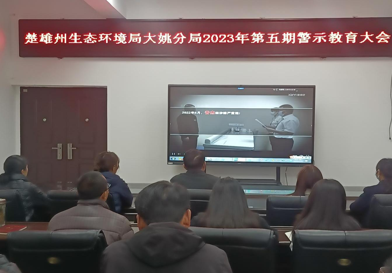 11月21日,楚雄州生态环境局大姚分局召开2023年第五期警示教育大会,分局党组成员、副局长文学江主持本次会议,全体干部职工参加。会议围绕深入贯彻落实党的二十大和县委第五期警示教育大会精神,把警示教育、党性教育、党纪党规学习教育,生态环境违法典型案例学习教育等活动紧密结合起来,集中观看了警示教育片《修不通的“大庄路”》,教育引导广大党员干部一是要牢固树立正确政绩观,解决好政绩为谁而树、树什么样的政绩、靠什么树政绩的问题,二是要明方向、正风气、强免疫,进一步增强遵规、守矩,知责、明责、履责、尽责的自觉性,深入推进“清廉大姚”建设取得实效,走向深入,三是要进一步严肃政治纪律、生活纪律、工作纪律,强化担当、廉洁履职,齐心协力全力冲刺,实现全年工作任务“大收官”。