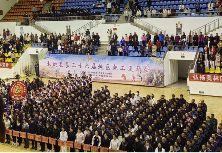 12月18日晚,大姚县第三十六届城区职工运动会在县体育馆开幕。州生态环境局大姚分局积极组织全体干部职工参加职工运动会,在运动会中充分展示环保铁军精神风貌。