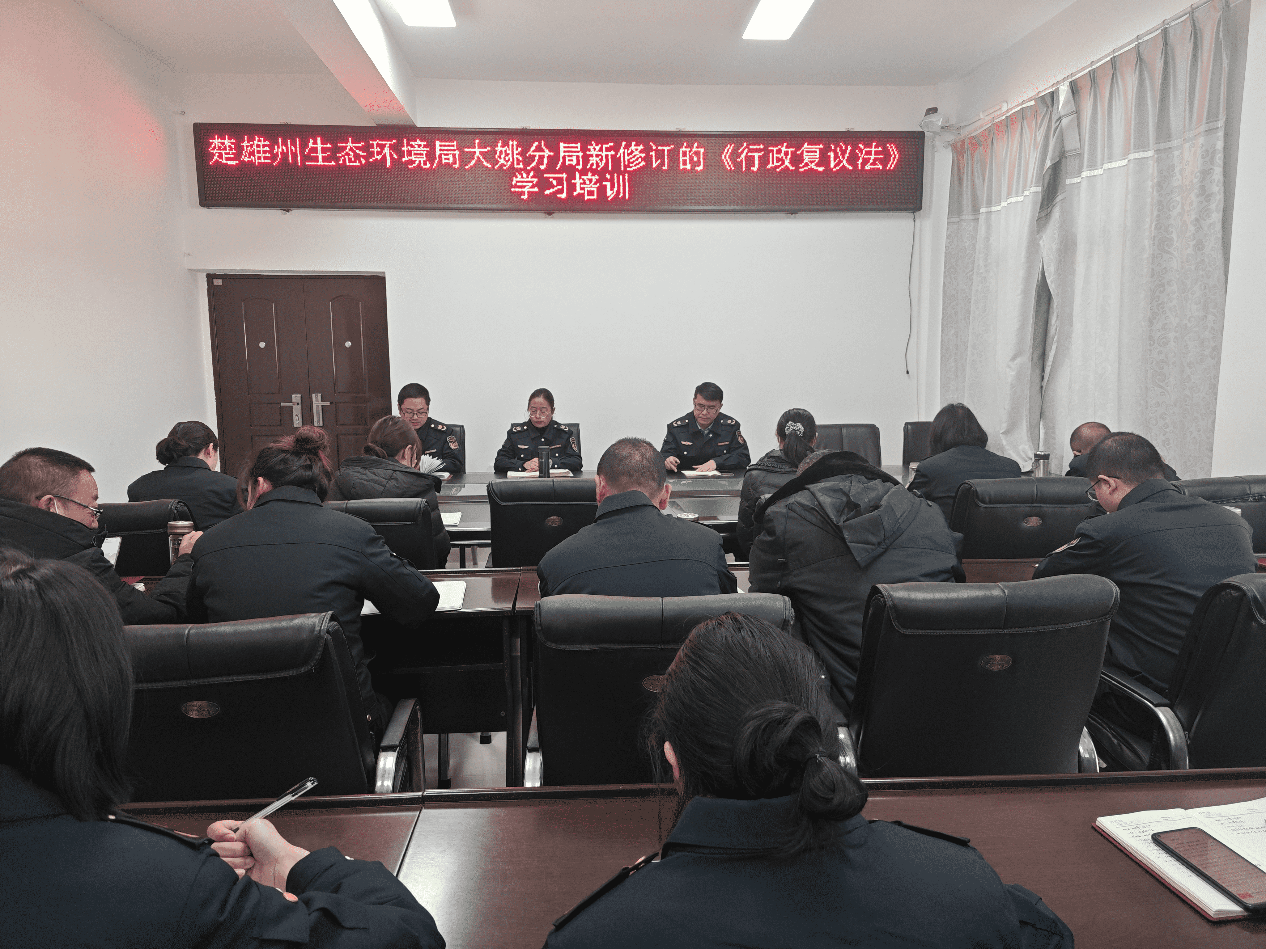 为全面贯彻党的二十大精神,深入学习贯彻习近平法治思想,全面学习贯彻新修订的行政复议法,提高执法人员规则意识、程序意识,提高严格规范、公正文明的执法意识和能力,楚雄州生态环境局大姚分局于1月2日开展新修订的《中华人民共和国行政复议法》学习培训。