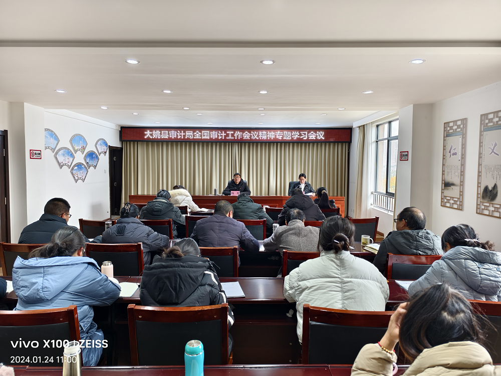 近日,大姚县审计局召开2024年党组理论学习中心组第二次集中学习会议,全面深入学习习近平总书记关于审计工作重要讲话、重要指示批示和全国审计工作会议精神。