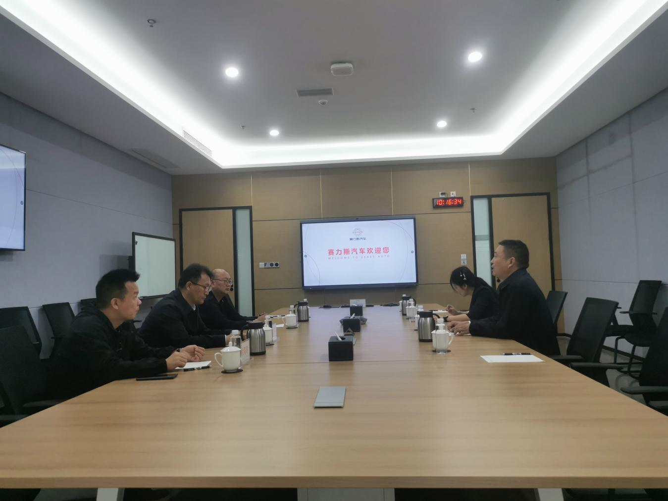 在赛力斯集团有限公司,考察团一行详细了解整车生产流程,随后,双方召开座谈会。会上,企业负责人重点介绍汽车整车生产各项核心技术及关键零部件制造技术,双方交换了意见。王丽平表示,新能源汽车发展前景广阔,未来可期,希望能与企业积极探索合作契机,开展交流合作。