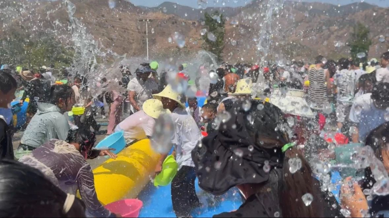 当日的活动气氛随着“泼水正式开始”的口号达到了高潮,数以万计的群众聚集在民族团结广场,互相泼洒着寓意吉祥、祝福的水,现场成为一片欢乐的海洋!在漫天飞舞的水花中,全体民辅警持续坚守,纵使全身被泼湿,脸上依然挂着微笑,勾勒出“窝巴节”最美“警”色,与四周欢乐的群众绘就了一幅民族团结的美好画面。