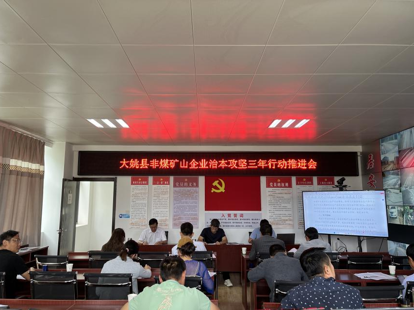 为推动全县非煤矿山企业落实安全生产主体责任、落实汛期安全管理措施,扎实推进非煤矿山治本攻坚三年行动工作,2024年5月24日,大姚县组织22家非煤矿山企业负责人召开非煤矿山企业安全生产治本攻坚三年行动推进会。