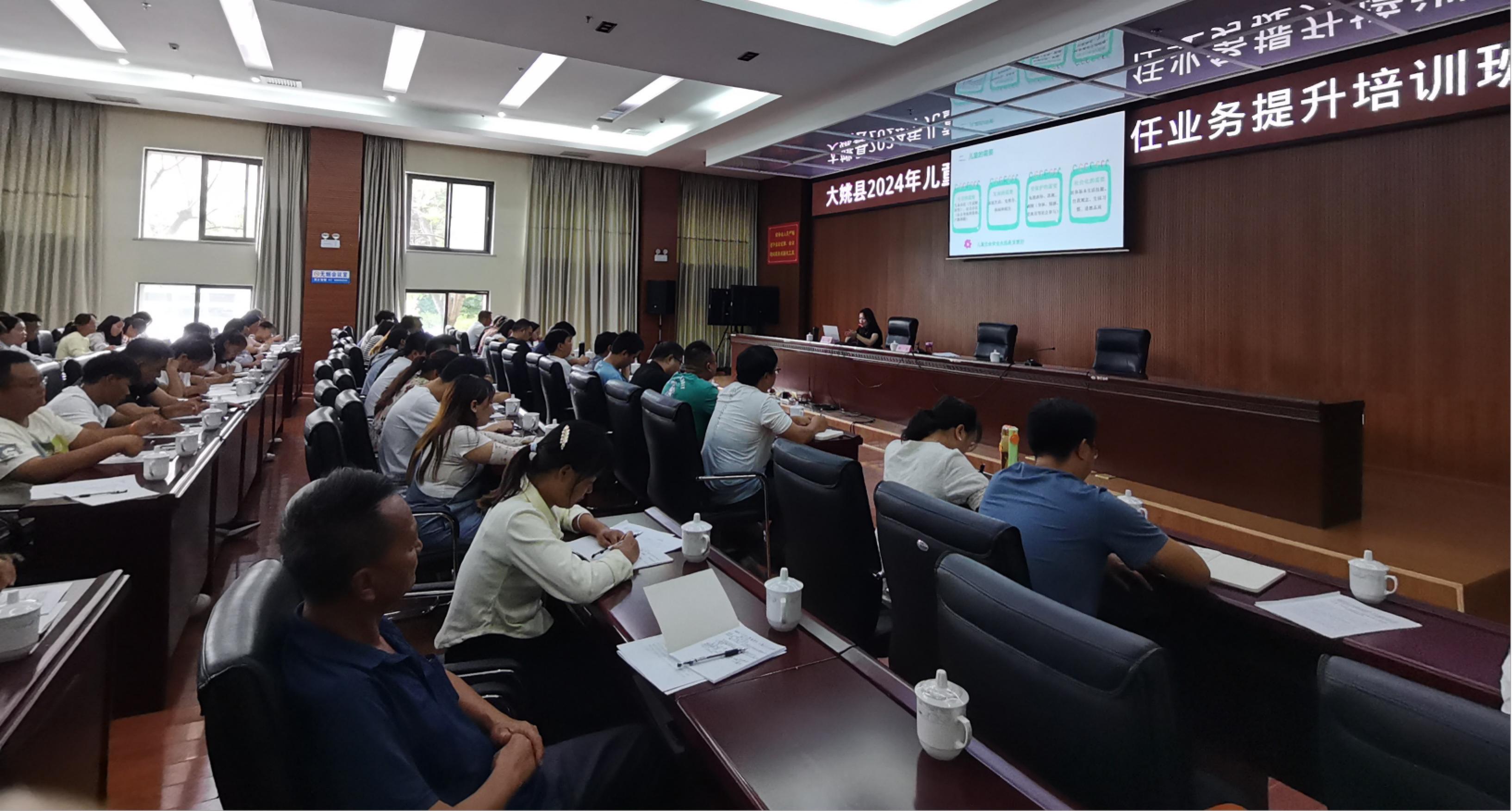 2024年7月24日,全县12名乡镇儿童督导员,14个中心学校校长,129个村(社区)儿童主任参加了为期一天的集中专家辅导培训会议。