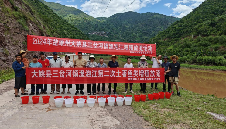 8月9日下午,大姚县农业农村局联合迪庆香格里拉土著鱼类恢复保护协会在大姚县三岔河镇荞苴村委会金沙江支流渔泡江大石房、他的么大桥等江段开展增殖放流活动。