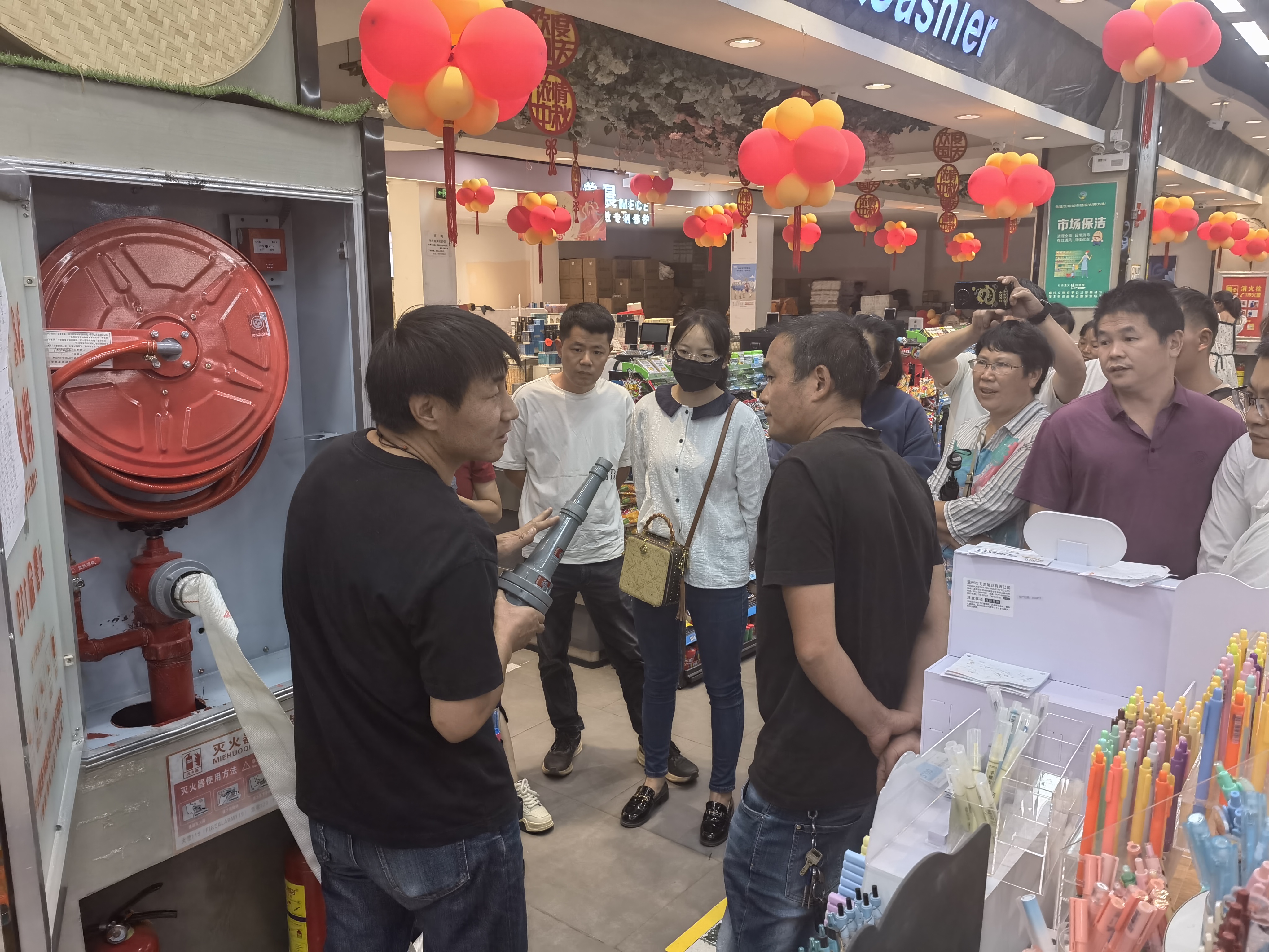 在现场观摩点,参会人员参观了大姚县家易购生活超市、金碧加油站达标创建试点单位,场所消防管理人从场所消防安全责任职责为架构,制定消防安全管理制度;以消防管理制度化、防控手段多样化、重点部位警示化、隐患排查常态化、消防培训经常化等方面介绍了消防标准化达标创建经验。