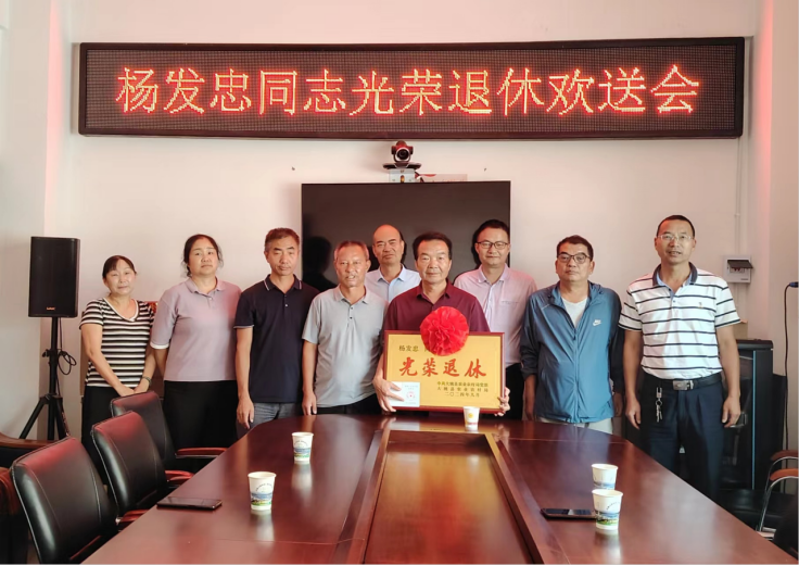 会后,局党组书记何兴贵为杨发忠同志颁发了光荣退休证书、光荣退休牌匾及退休纪念品,大家一起合影留念,希望退休老同志“退而不休”,常回“家”看看。