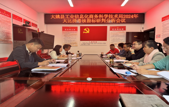 10月16日,大姚县工业信息化商务科学技术局召开2024年大比拼考核指标研判分析会议,对承担支撑GDP增长的各项经济指标、州县下达的各项重点工作逐一分析研判,进一步厘清下步工作思路,聚力“冲刺100天”,努力完成经济社会发展各项目标任务。