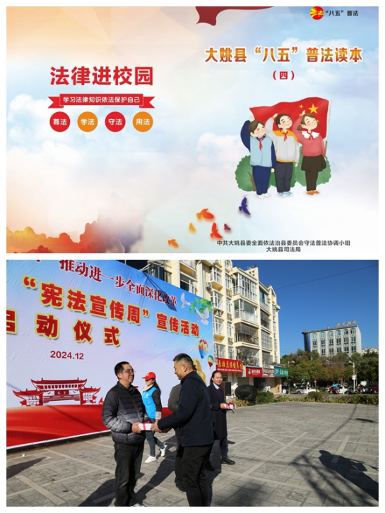 今年是全面落实“八五” 普法规划的关键一年,也是我省普法强基补短板专项行动的深化之年,为开展好国家宪法日和“宪法宣传周”宣传活动,12月2日上午,大姚县2024年“宪法宣传周”宣传活动启动仪式在县城金碧广场举行,县级各部门干部职工代表及群众300余人参加活动。