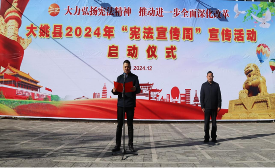 启动仪式由县人民政府副县长、县公安局长汪福主持。县委常委、县委政法委书记李俊讲话并宣布大姚县2024年“宪法宣传周”宣传活动启动。李俊强调,全县上下要以习近平法治思想为指引,牢牢把握宪法定位,坚持依法治国、依法执政、依法行政共同推进,推动法治国家、法治政府、法治社会一体建设,为建设更高水平的平安大姚、法治大姚贡献力量。要通过多种形式,让宪法的精神深入人心,让每个公民都能了解宪法、认识宪法、遵守宪法。要深入学习宪法,深刻领会其精神实质和核心要义,以宪法为行为准则,维护宪法的尊严和权威。要积极践行宪法精神,从自身做起,从小事做起,为建设法治社会贡献自己的力量。