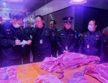 为切实保证畜禽产品供应安全,确保辖区群众吃上放心肉,营造安全放心的市场环境,围绕严厉打击肉类产品违法犯罪专项整治工作要求,县农业农村局会同县市场监督管理局、县公安局等单位,于2025年3月27日凌晨6时许,出动执法人员9人,对大姚县永盛农贸市场进行突击检查整治工作。