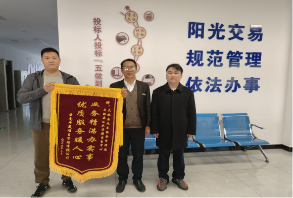 近日,云南平晟项目管理有限公司负责人专程来到大姚县公共资源交易中心,为工作人员送上“业务精湛办实事,优质服务暖人心”的锦旗,对所提供的高效、便捷受理见证服务表示衷心的感谢!