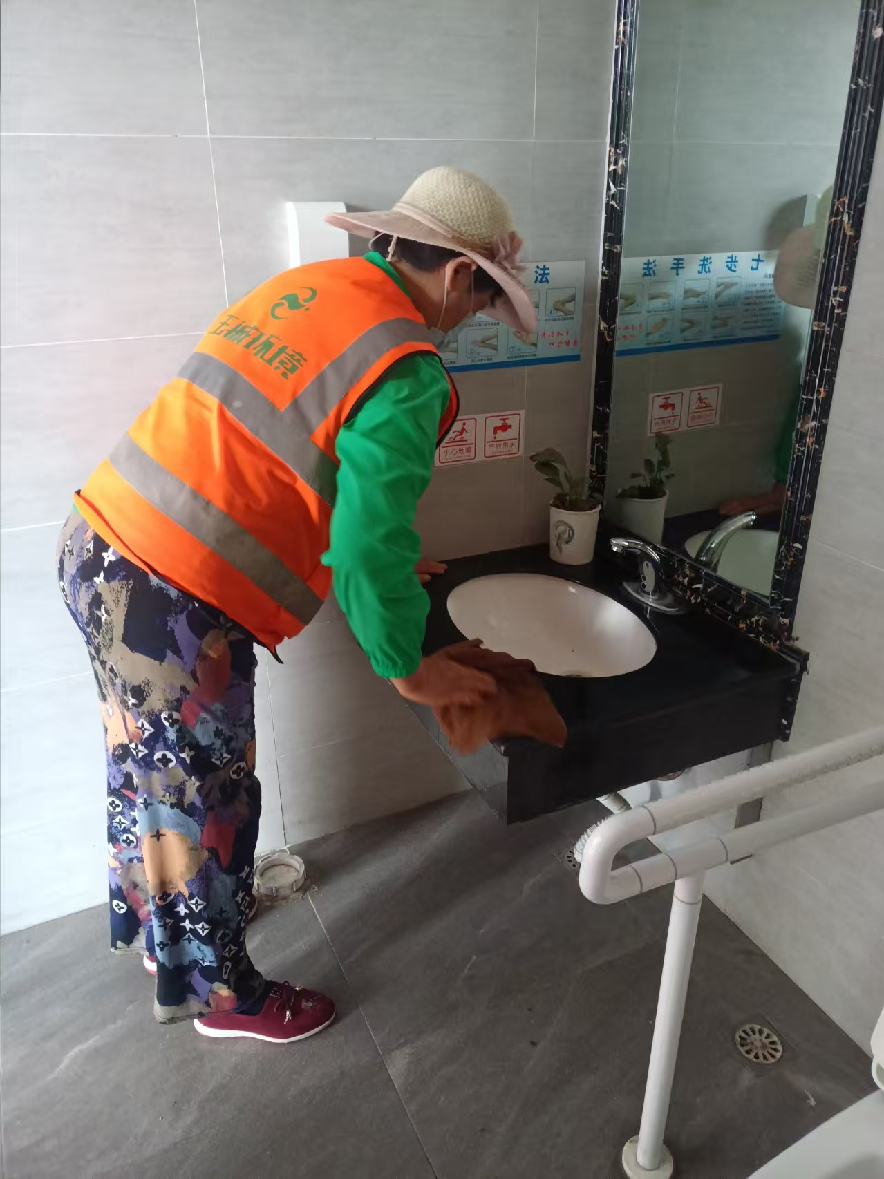 二是细化作业流程,使保障“细”在过程中。为不断提升城区公厕环境质量,服务于群众,该局根据《公共厕所卫生规范》GB/T17217 的规定,进一步加大公厕内外环境卫生整治。对公厕内外环境进行清洁,确保公厕内外采光、照明和通风良好,无明显臭味;厕内墙面、洗手盆、门窗、隔离板无积灰、污渍、无乱涂乱画,墙面光洁,地面无积水;便槽无污物、尿垢,管道保持畅通无阻,蹲位整洁,冲水设备完好;公厕周边无垃圾广告、无乱堆乱放,清洁工具摆放整齐,周边环境干净整洁。在公厕内配备了卫生纸、洗手液、干手器等便民用品,为市民提供更加便捷的服务。