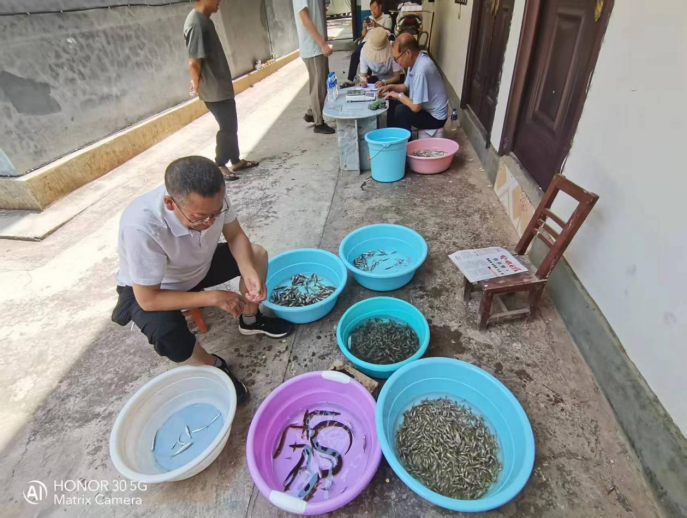 通过两天的监测,捕获鲫鱼、宽鳍鳞、黄桑鱼、棒花、麦穗、鳑皮、子陵吻鰕虎、餐条等8种鱼类;大鳞富泥鳅、泥鳅、昆明高原鳅等3种泥鳅,还有少量的虾、黄鳝等,此次监测还发现了一条国家级保护动物“中华倒刺鲃”。