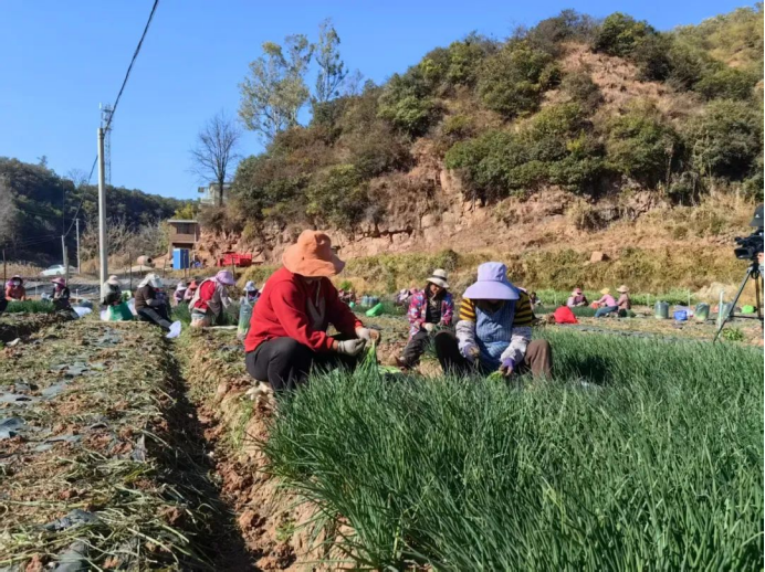 走进大姚县新街镇新街社区香葱种植基地,150亩绿油油的香葱像一片泛着光泽的绿色地毯,伴随着葱农的欢笑声映入眼帘。香葱郁郁葱葱、挺拔如玉、长势喜人,20余名葱农忙着拔葱、分拣、装运,一片丰收景象。