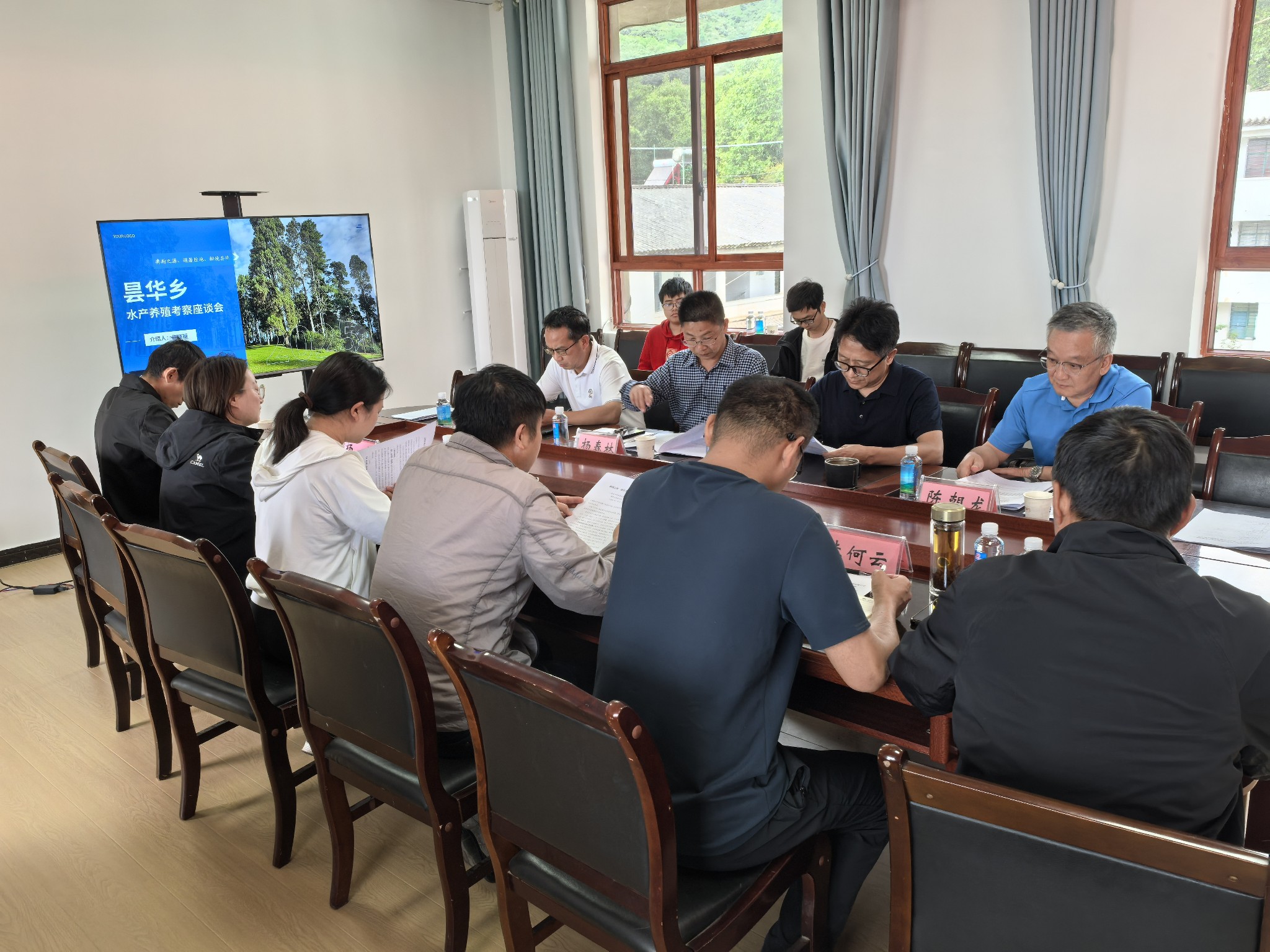 在考察座谈会上,昙华乡对辖区近十年降雨情况、境内河流分布状况、水资源总量、水流量情况、水温变化情况、水流溶解氧等核心指标进行了详细介绍。专家们结合相关介绍和昙华乡提供的调研报告初步分析结果,就昙华乡水资源特点、适宜的水产养殖模式、养殖技术要点及潜在风险防控等方面提供了初步建议。