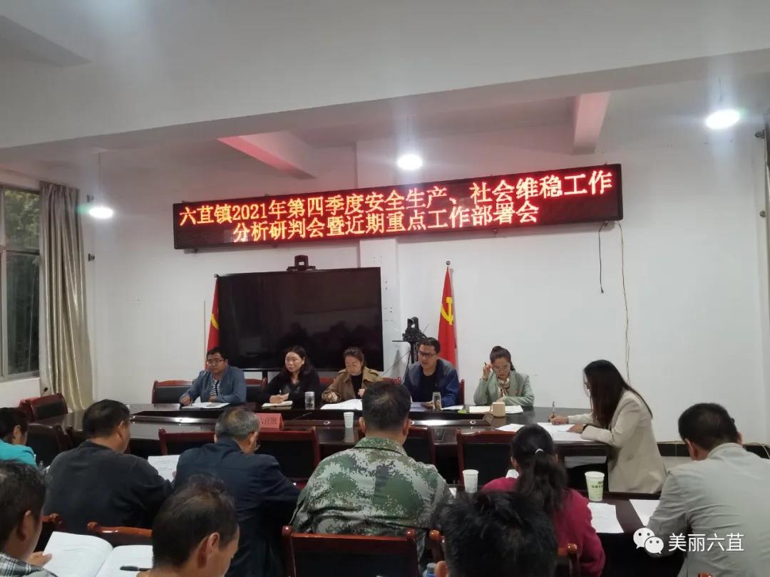 为认真贯彻落实州委书记专题会议精神及州县安全生产视频会议精神,切实抓好当前重点工作,维护辖区安全和谐稳定。10月15日晚,六苴镇第一时间召开四季度安全生产、社会维稳工作分析研判暨近期重点工作部署会议。