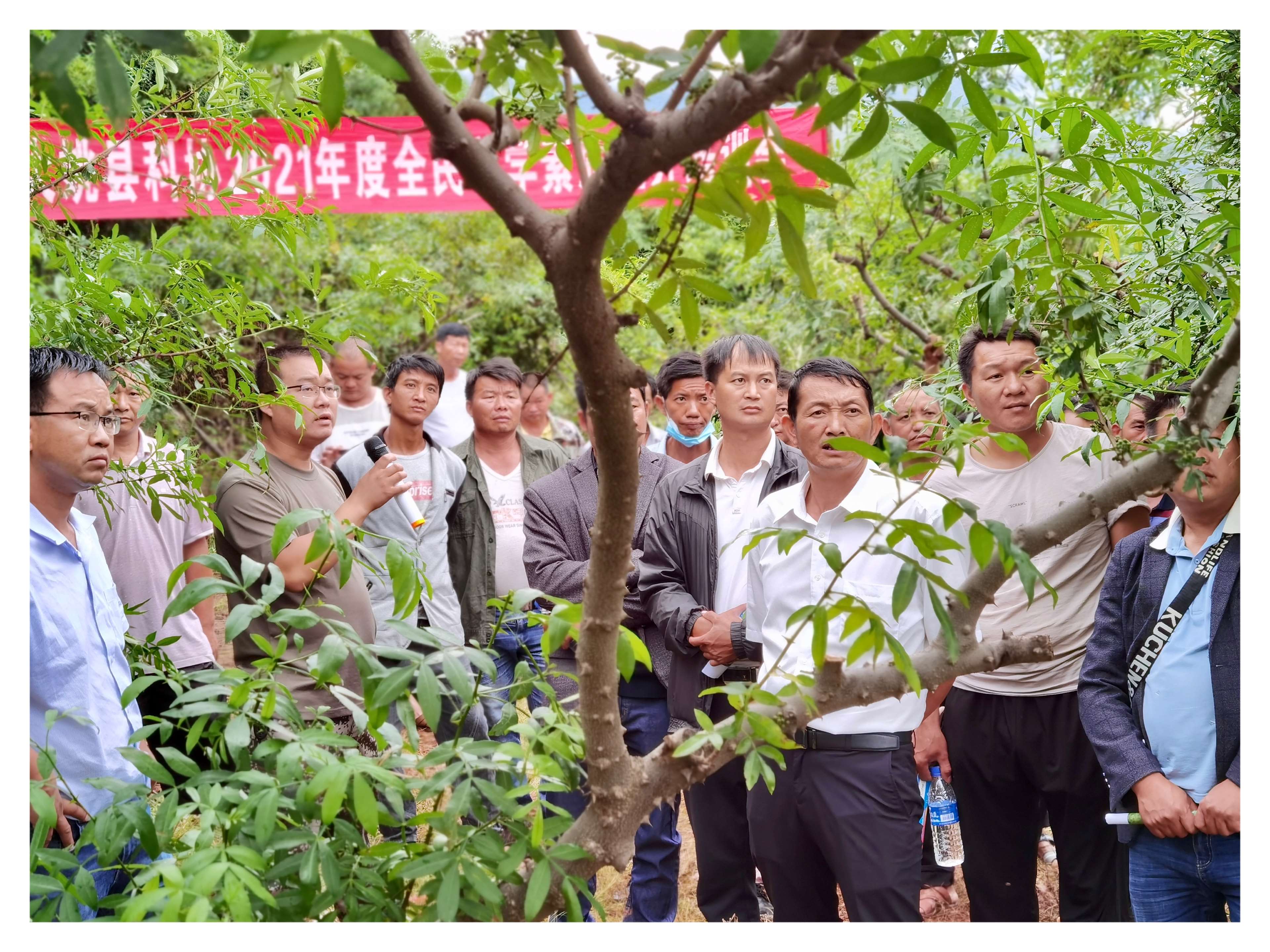 现场会通过工作部署会议+花椒侧枝轮换修剪方案 13 项提质增效技术讲解和培训方式进行。对当前发展花椒产业的短板和不足进行了分析;对主动融入新发展格局,围绕县委“12345”发展思路和“11233”发展目标,笃行实干,着力建设湾碧乡花椒生产基地,为推动楚雄州高质量发展开好局、起好步,为大姚县高质量跨越式发展贡献湾碧力量做了强调;四川国光股份有限公司花椒专家对初果、盛果期青花椒提质增效6项技术,对衰老青花椒7项措施进行讲解和示范培训。