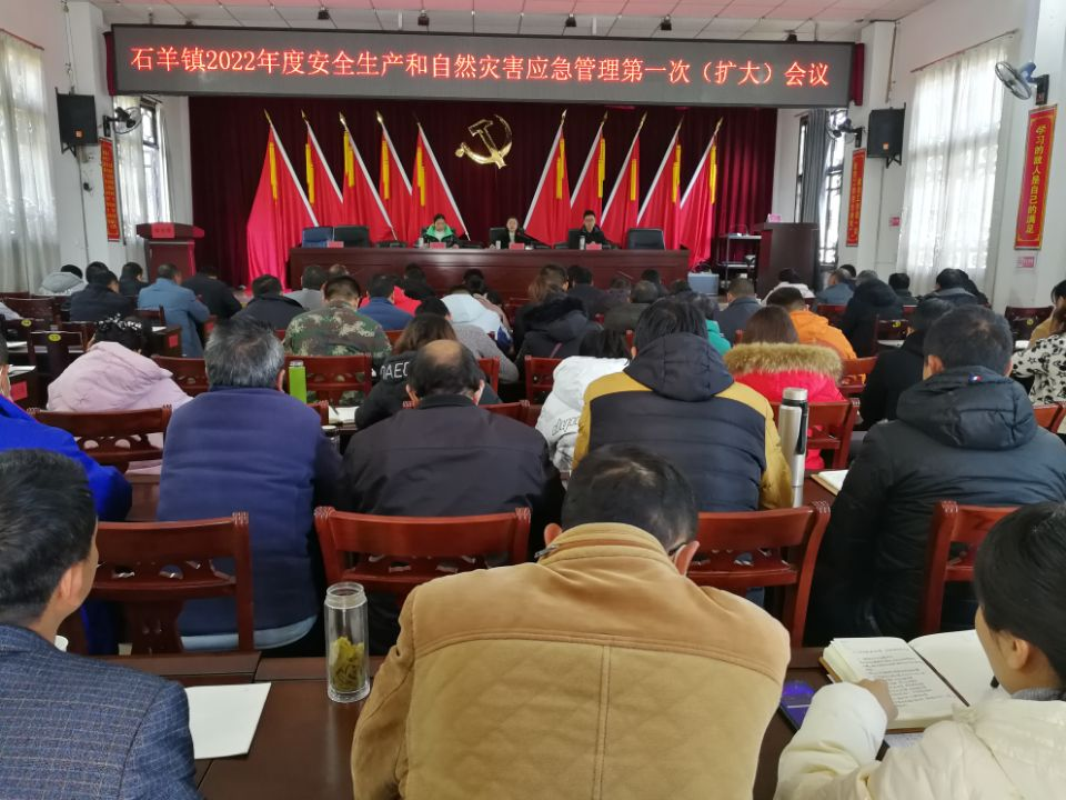 岁末年初,春节将至,正值安全生产关键时期。为贯彻落实习近平总书记关于安全生产重要指示批示精神,深入排查治理安全隐患,切实加强春节期间安全生产工作。1月11日上午9时,石羊镇党委、政府精心组织召开2022年安全生产、自然灾害应急管理第一次(扩大)会议。动员全镇力量,齐心协力抓好安全生产工作,筑牢安全屏障,维护我镇安全生产形势稳定。