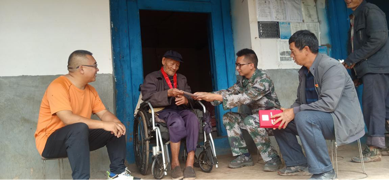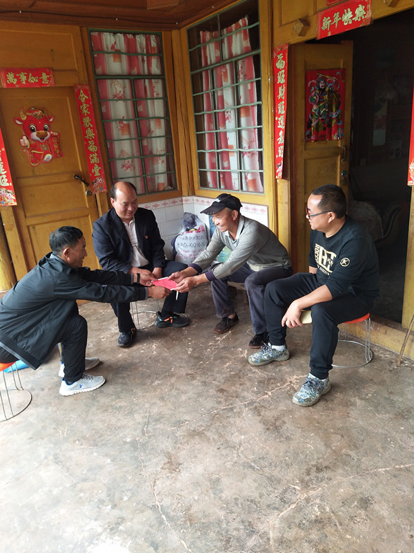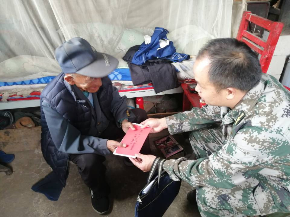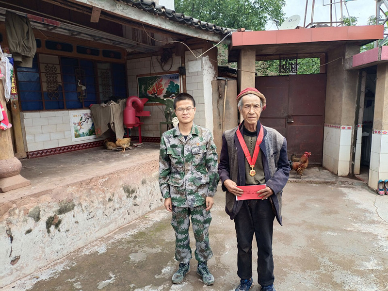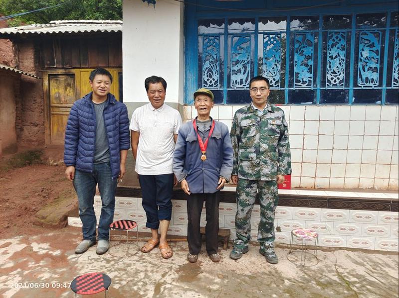 (图为乡党委副书记、乡长为杨金洪同志慰问昙华村委会丫古埂小组老党员杞宗成同志并为其颁发“光荣在党50年纪念章”)