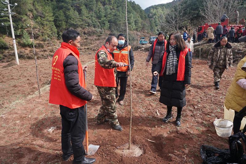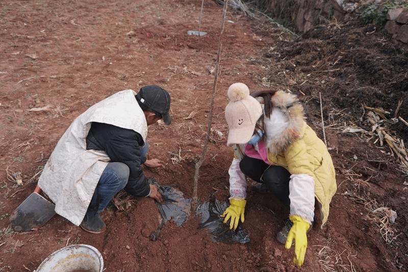 正值大寒节气,在海拔2500多米的昙华乡子米地村拉乍们,村民们忙碌栽种的身影在毛毛小雪中显得更加美丽,山坡上种植的车厘子果苗已连亩成片。
