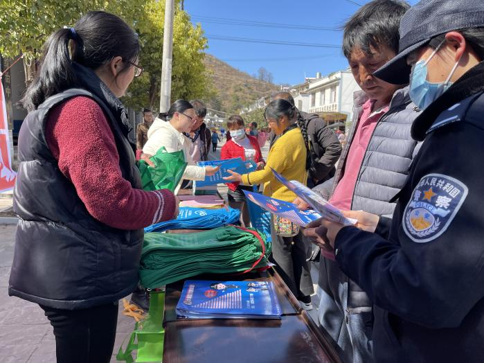 活动现场,通过悬挂横幅、发放宣传材料、宣传袋、挂历、工作人员讲解等形式向过往群众宣传平安建设、扫黑除恶、反传销、反诈骗、防邪反邪、防非法集资、安全生产、信访维稳、食品安全、道路交通安全等内容,并提供涉及公共安全、法律法规、社会事务等咨询服务。