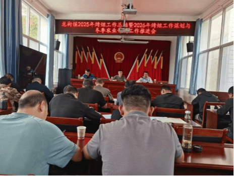 上午10时,实地观摩结束后,全体人员在龙街镇大会议室召开2025年烤烟工作总结暨2026年烤烟工作谋划与冬季农业开发工作推进会。