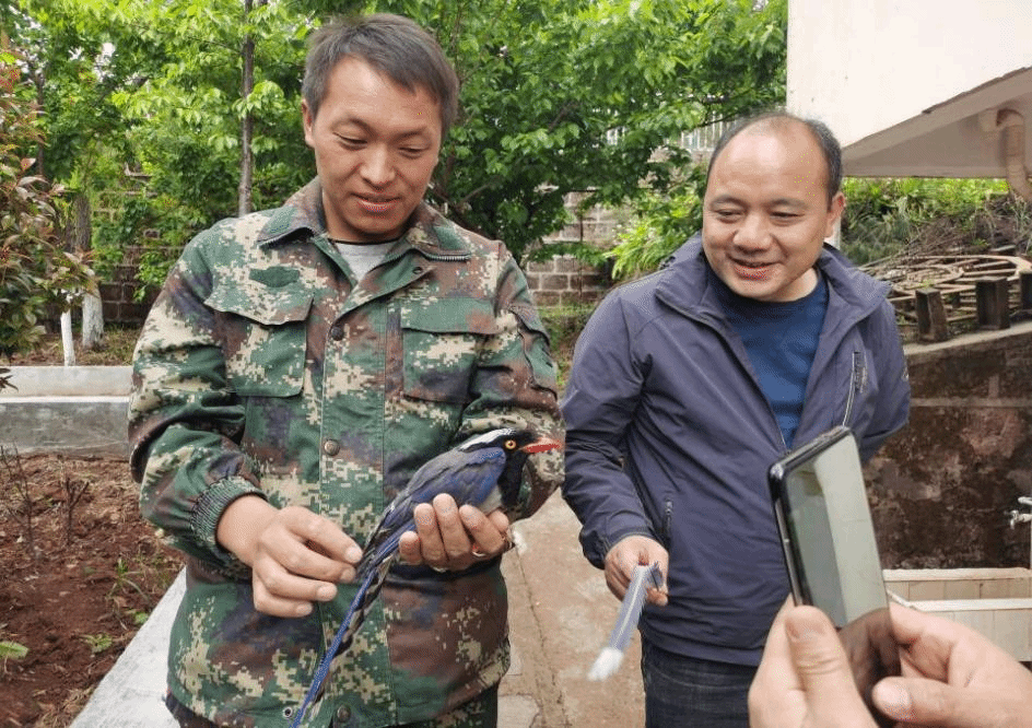在请教县森林公安专家后得知,此鸟是国家二级保护动物——红嘴蓝鹊,是鹊类中体积最大、尾巴最长、羽色最为亮丽的一种, 具有极高的观赏价值,也是古今花鸟画中常见的主角。鸟儿因腿部受伤,眼下起飞有些困难,分析很可能是被不良捕猎者所伤害,拼命飞到了林草中心,似乎是来“求救”的。见了此景,林草中心工作人员十分同情,立即联系乡兽医站,将鸟送到兽医站处理伤口,在兽医师精心的处理后小鸟放归大自然。