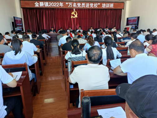 为认真贯彻落实新时代党的建设总要求、践行新时代党的组织路线,深入学习习近平新时代中国特色社会主义思想和习近平总书记考察云南重要讲话精神,提升党员队伍整体素质,增强党组织的凝聚力,金碧镇党委于7月10日至12日在镇党校举办为期3天的2022年度“万名党员进党校”培训班,培训会议以视频形式开至各村(社区)。金碧镇机关全体党员和27个村(社区)全体党员、驻村工作队员、村民小组长、入党积极分子、发展对象共计4700余人参加培训。