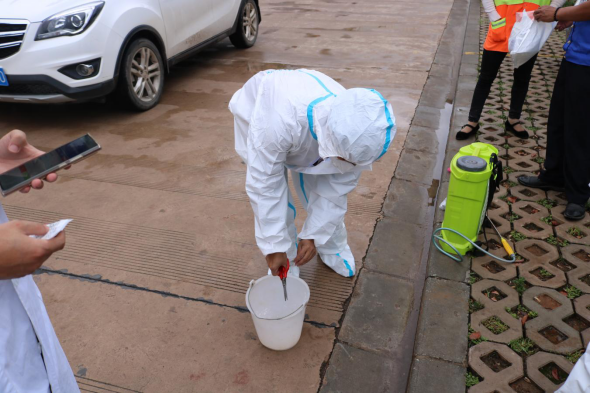 消杀前期准备充分。为确保消毒的覆盖面、针对性和有效性,镇疫情防控指挥部根据实际制定消杀方案、明确工作安排。在消杀前,按照环境消杀技术标准要求,由工作人员穿戴好防护用品,按照使用说明配置好消毒液,加入到消毒器械中。接着按照分组进行消杀,同时对于镇区街道配齐一张洒水车进行沿路消杀。
