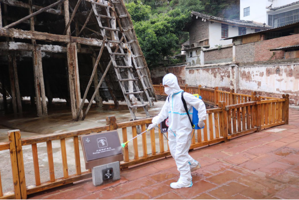 消杀中期细致入微。全镇相关重点人流密集区域较多,如车站、学校、卫生院、酒店、景区(龙女牧羊广场、游客接待中心、晒盐篷、孔庙等),对此消杀人员针对重点区域反复消杀,聚焦重点区域开展系统性、整体性消杀。各组消杀队伍为确保消杀不留死角,对酒店前台、景区售票处、车站门把手、扶手、洗手间、等常接触区域进行多次消毒药水喷洒,重点区域按往常消杀频次大多每日两次,公厕等相对密闭的场所会适当增加消毒次数。此外全镇进一步压实责任,加强对周边商铺、小型商超、菜市场、机关企事业单位公共场所等环境消毒工作。