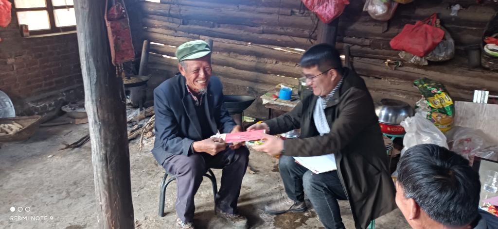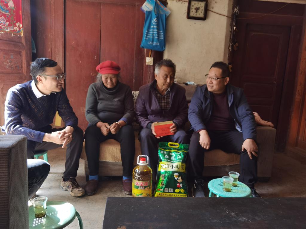 在“三类监测人员”家,挂包干部为对口帮扶群众送上慰问礼品,积极为群众宣讲政策、听取群众诉求、与群众制定2022年发展计划。