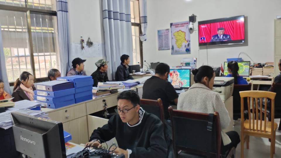 10月16日上午,中国共产党第二十次全国代表大会在北京开幕,六苴镇组织党员干部、镇村干部职工、人民群众观看开幕会。