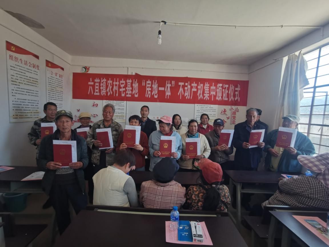 为扎实推进农村宅基地“房地一体”确权登记工作,夯实乡村振兴产权基础,近日,六苴镇在簸箕村委会下岩小组举行了农村宅基地“房地一体”不动产权集中颁证仪式。