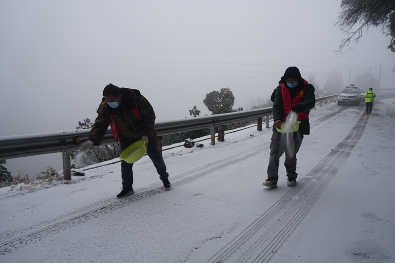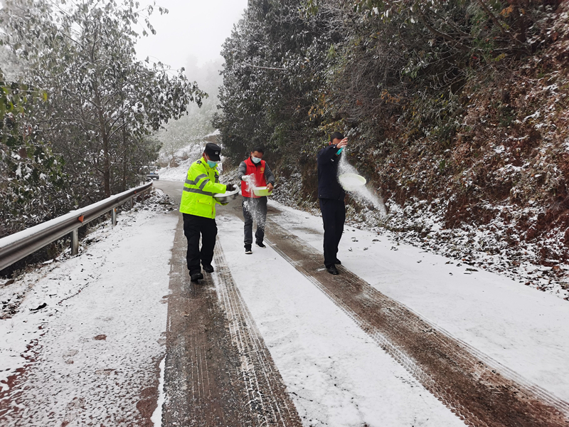 12月18日清晨,昙华乡的气温低达零下3摄氏度。为了保障辖区内的群众平安出行,昙华乡迅速行动,联合乡派出所的民警,在乡辖区内瓦拉公路沿线撒工业盐清除路面积雪。经过大家共同的努力,路面的积雪清理完毕,给群众出行创造了安全畅通的交通环境,为过往群众开辟出一条“平安路”。