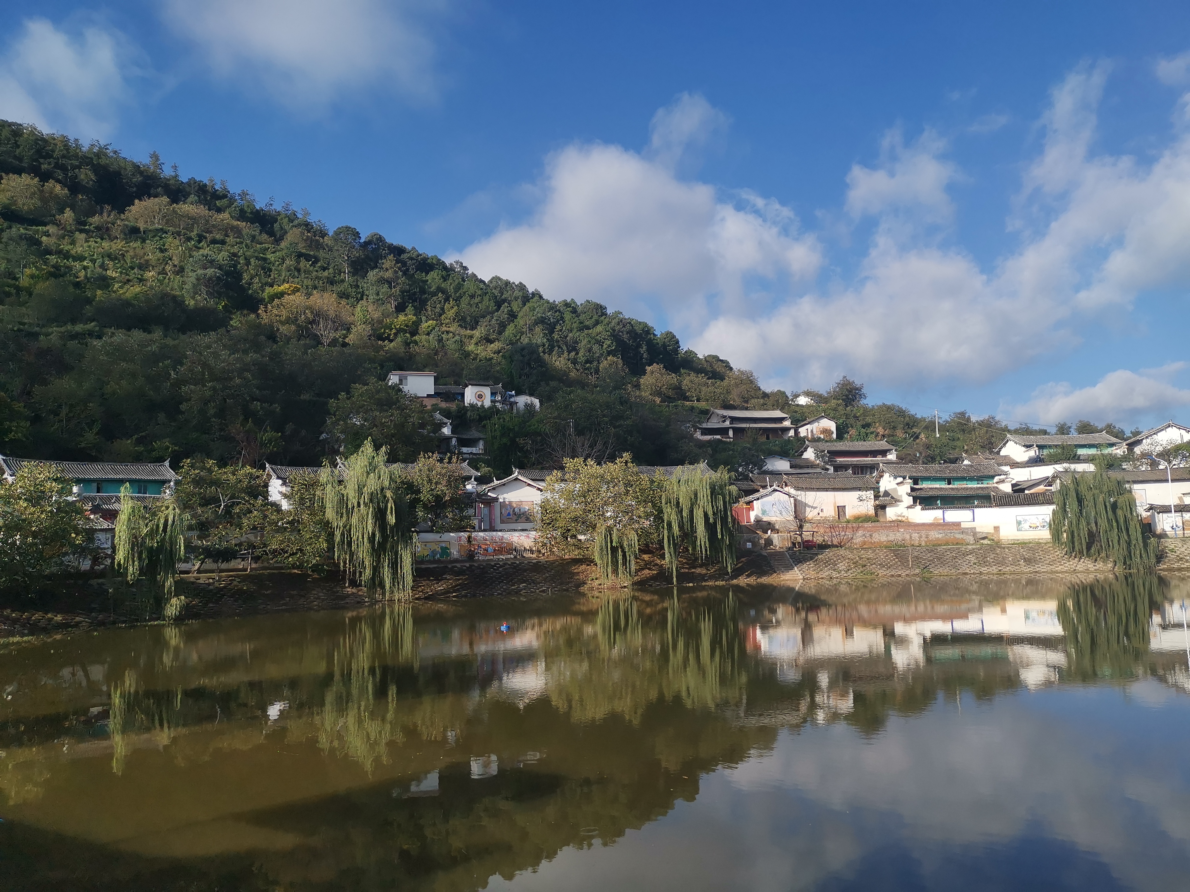 水井村是一个彝族聚居村落,位于六苴社区东南角,村内有一口历史悠久的古井,水井因此得名。水井村位居半山顶,村子正中有一个坝塘,50余户群众围水而建。坝塘正前方,建有民族团结广场,每逢妇女节、火把节等传统节日,妇孺老少便会换上彝族盛装,围圈打跳。坝塘左侧的文化长廊给彝族群众提供了学习的阵地,闲暇时节,三三两两相约一起驻足学习。坝塘右侧的党员活动室时常因“红黑榜”评比深得人心而传出激烈的掌声,灯光篮球场上青年活跃的身影交错着墙体彩绘和垂柳枝条相互映衬,仿如正在演绎皮影戏;妇女坐在坝塘边缝着鞋垫、绣着刺绣、拉拉家常,微风轻拂,不时传来几曲彝族调子,村庄一片悠然自得,俨然一副美好的画卷。