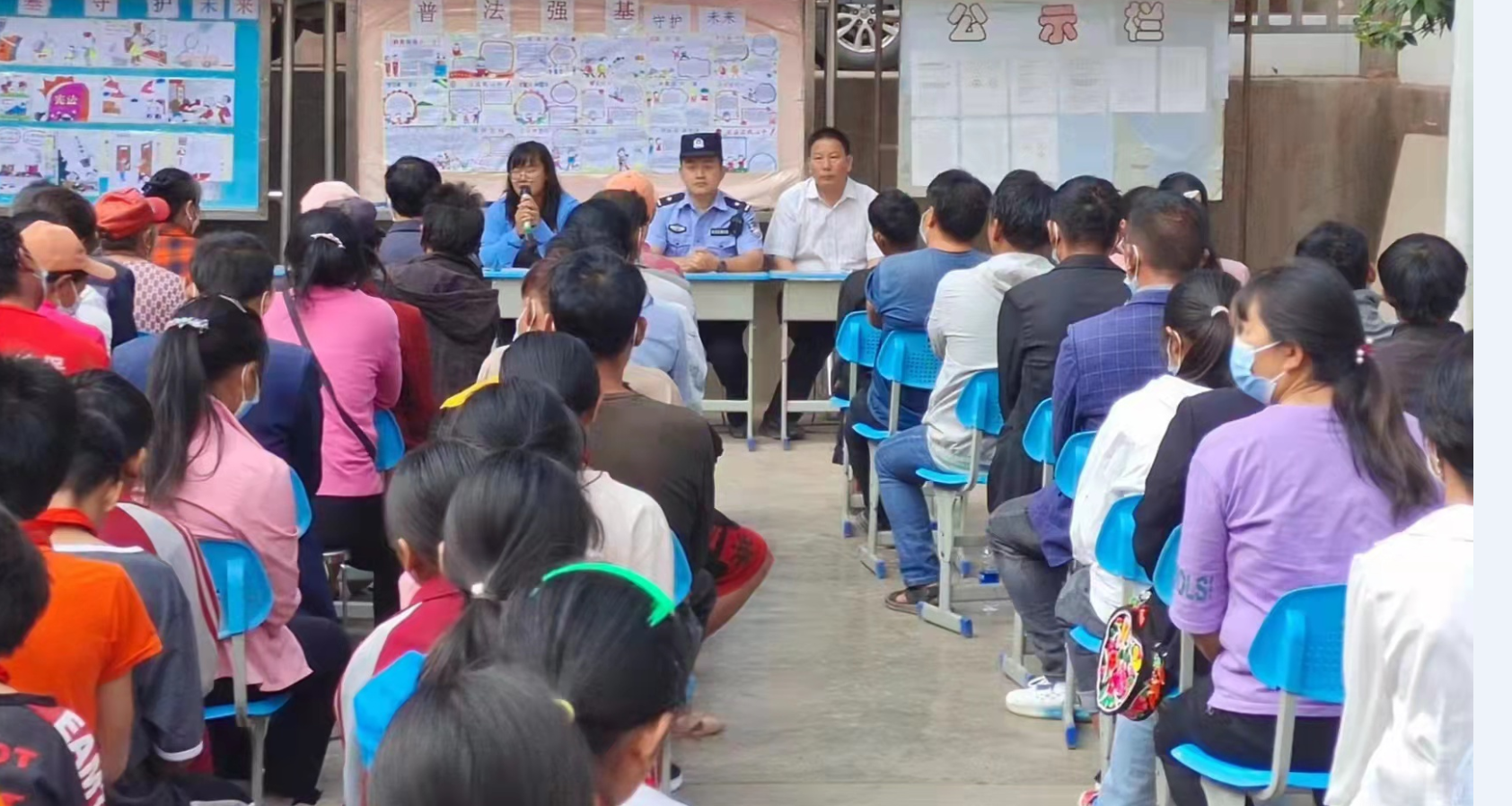 (图为湾碧乡普法宣传教育队伍深入辖区内中小学校召开家长会开展“普法宣讲进校园活动”)