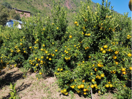 驻扎双河一周后,我完全克服了心理上的“水土不服”,与双河村融为一体。初时那种一条山冲、重山逼仄、视线困闭的窒碍感荡然无存。每天一跨出大门,“两河交汇”的独特自然景观就呈示眼前。尽管对面的山体有些荒寂,然而河畔田野中,亭亭玉立的青蚕豆苗、身材颀长的青豌豆苗,相互较着劲儿蹭蹭蹭往上长,咿咿呀呀一股脑儿开满白色、粉色、紫红色花朵,隐隐清香吸引着蜜蜂们也无暇歇息,频频在花间穿梭忙碌,采撷百花菁华,酿造人间极品。更有那一片片的双河柑橘,刚到成熟季,在一大蓬青枝绿叶间,枝头上挂满一枚枚黄灿灿沉甸甸的橘果,让人垂涎。不论是冬早豌豆、早青蚕豆,还是柑橘,都是双河村巩固拓展脱贫攻坚成果的“看家把式”。只不过,此时,它们在我眼中站成了一道亮丽的风景。