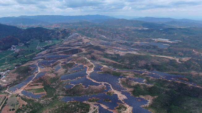 走进大姚县龙街镇,峰峦起伏的青山披上了湛蓝色的“光伏”新衣,一排排光伏板在阳光的照射下熠熠生辉,与周边的田园、村庄构成了一道亮丽的风景线。