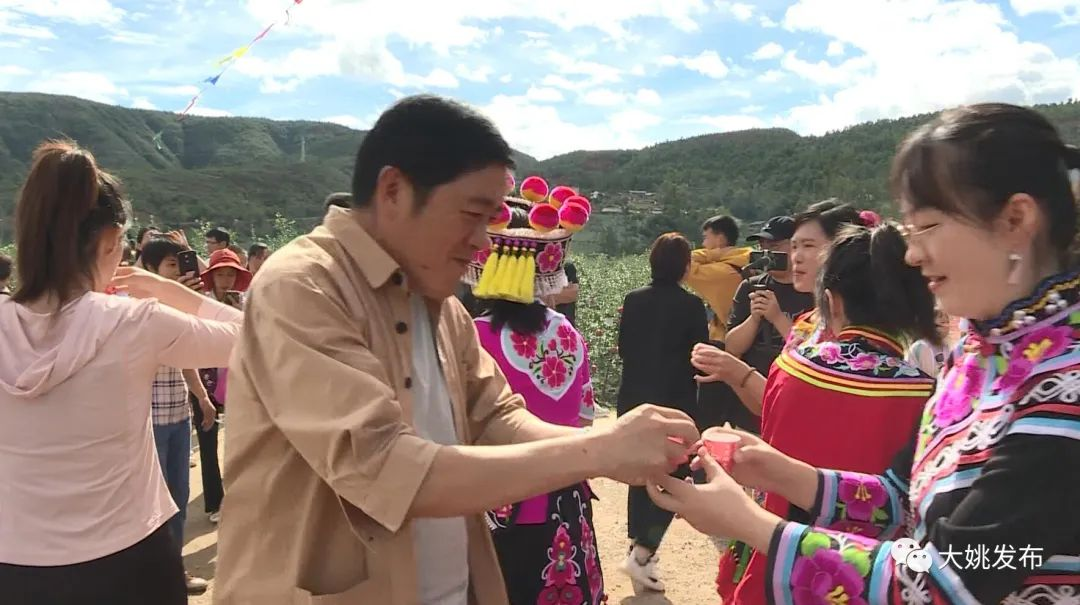 秋高气爽,硕果飘香。龙街镇丰收节吸引了八方游客前来围观,上午9点30分,在绞苴石榴基地门口,身穿彝族盛装的阿哥阿妹唱着迎客调,端着今年新酿石榴酒,载歌载舞欢迎来自四乡八寨的游客朋友。